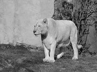Leeuwen hebben meestal een hazelaar of goudbruine kleur voor hun vacht. In het geval van witte leeuwen is de vacht echter volledig wit of een zeer bleke versie van de gebruikelijke hazelaar bont. De kleur van de vacht kan variëren van blond tot bijna wit. Deze verkleuring wordt geërfd van de ouders, maar is een recessieve eigenschap, wat betekent dat de kans groter is dat een hazelaar kleurrijke leeuw uit hazelnootkleurige leeuwen wordt geboren dan die van een witte leeuw. Evenzo kan fokken in witte leeuwen resulteren in bruine nekken. bron wikipedia.