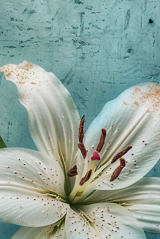 Deze prachtige afbeelding toont een witte lelie in volle bloei, gecombineerd met een verse, groene bloemknop. De eenvoudige, maar elegante vormgeving van de bloem wordt versterkt door de zachte tinten blauw op de achtergrond. Dit ontwerp past perfect in moderne en minimalistische interieurs, en kan een kalmerend en verfijnd accent geven aan elke ruimte. De combinatie van de subtiele kleuren en de gedetailleerde weergave van de bloembladeren en knop zorgen ervoor dat dit ontwerp zowel natuur- als kunstliefhebbers zal aanspreken. Perfect voor een slaapkamer, kantoor of een ontspannende leeshoek, waar het zowel rust als schoonheid toevoegt aan de omgeving.