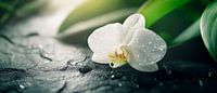 Koop dit bloemen kunstwerk Witte orchidee met waterdruppels van Poster Art Shop als print op canvas, aluminium dibond, (ingelijste) fotoprint, behang en ArtFrame. Voor jou op maat geprint in Fine-Art kwaliteit.