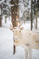 Witte rendieren in de sneeuw in het bos