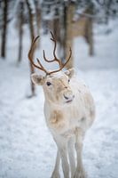 Witte rendieren in de sneeuw in het bos