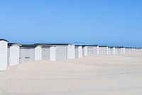 Koop de foto Witte strandhuisjes met blauwe lucht van Sander Groenendijk op canvas, aluminium dibond, (ingelijste) fotoprint, behang en ArtFrame, op maat geprint in Fine-Art kwaliteit.