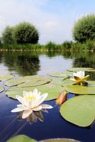 Prachtige close up macro opname van de witte waterlelie (Nymphaea alba) in het water van rivier de Angstel in Baambrugge onder Amsterdam