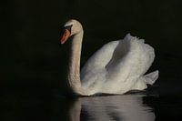 Witte wilde zwaan in een donkere wereld in Nederland.