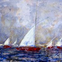 Witte zeilen , water , romance , water , boten , wit, blauw , vrijheid , vrije tijd, zeil tegen de wind , met de wind , zeilen regatta, kunst, schilderen , acryl, origineel 2009 ,