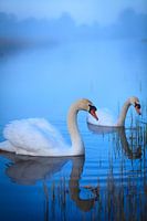 Twee witte zwanen op een vroege ochtend vlak bij Groningen.