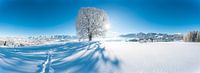 Wittelsbacher Höhe met linde in de winter met de Allgäuer Alpen en verse sneeuw