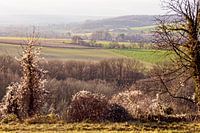 Het dorp Wittem en het Geuldal in het Limburgse Heuvelland gezien vanaf het Eyserbos (Nederland).