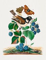 Witwangspreeuw, braamstruik en komma en zevenvlekkever op blad (1768) schilderij van James Bolton.