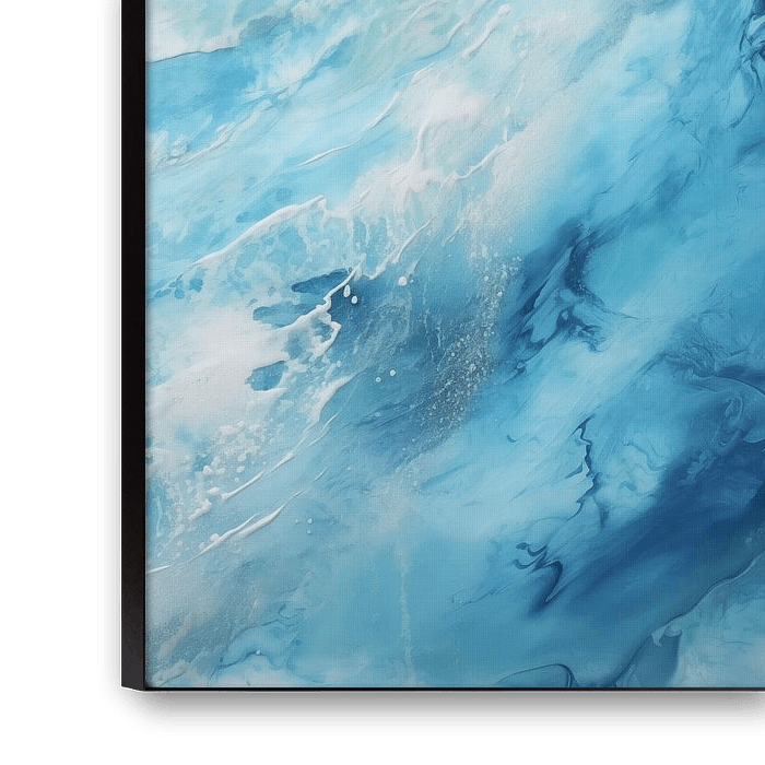 Een digitaal schilderij van een woeste golf die op het punt staat te breken. Dit kunstwerk heeft een langwerpige smalle vorm, waardoor het uitstekend geschikt is om de hoogte van een ruimte te benadrukken.