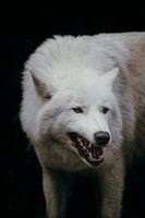 Deze afbeelding geeft elke ruimte een mysterieuze en rauwe sfeer, ideaal voor natuurliefhebbers of diegenen die hun interieur willen verfraaien met een stoer, natuurlijk accent. De subtiele contrasten van de witte vacht tegen de donkere achtergrond versterken de dramatiek en trekken direct de aandacht. Dit werk roept spanning en bewondering op en is geschikt voor een breed scala aan interieurstijlen.
