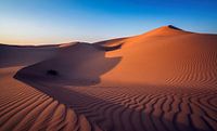 De woestijn nabij de stad Abu Dhabi vlak voordat de zonder gaat. De schaduw trekt langzaam omhoog, tijd om te gaan