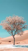 Dit rustgevende, trendy kunstwerk toont een opmerkelijke scène van een boom die bloeit in het hart van een woestijn.