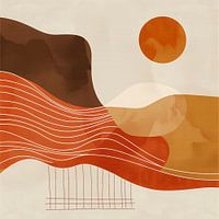 Dit stuk weerspiegelt de essentie van een woestijnlandschap, met golvende lijnen die de eindeloze duinen voorstellen, onder een brandende zon. De rijke, aardse kleuren variëren van diepbruin tot zacht zand en terracotta, wat een warme en uitnodigende atmosfeer creëert. De subtiele geometrische structuren aan de onderkant van het beeld zorgen voor een interessant contrast en voegen een moderne twist toe aan het natuurlijke thema. Het geheel zou een goede toevoeging zijn aan een ruimte met natuurlijke lichtinval en houten accenten.