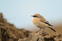 De woestijntapuit is in Nederland een zeer zeldzame verschijning. Dit eerstejaars mannetje zat in november 2017 in de omgeving vaan Schiphol en durfde erg dichtbij te komen.