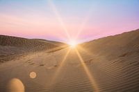 In de zandduinen van Maspalomas op het Canarische eiland Gran Canaria in Spanje. De zon schijnt over het hete zand.