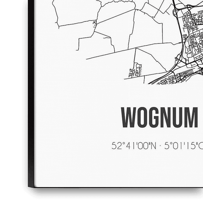 Koop dit abstracte kunstwerk Wognum (Noord-Holland) | Landkaart | Zwart-wit van Stad & Wand als print op canvas, aluminium dibond, (ingelijste) fotoprint, behang en ArtFrame. Voor jou op maat geprint in Fine-Art kwaliteit.