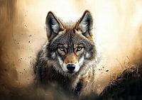 Uit het niets verschijnt hij, als een schaduw die tot leven komt. De wolf, een symbool van kracht en onafhankelijkheid, kijkt recht vooruit met een doordringende blik die zowel dreigend als wijs aanvoelt. Zijn ogen zijn de ogen van een leider, van een wezen dat de geheimen van het bos kent en geen angst kent voor wat zich in de duisternis schuilhoudt.