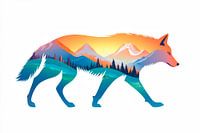 Een majestueuze wolf, wiens silhouet wordt afgewisseld met lieflijke berglandschappen en stralende zonsondergangen, belichaamt de wilde schoonheid van de natuur. De harmonieuze kleuren en dynamische vormen geven elke kamer een rustige maar krachtige uitstraling. Dit kunstwerk is perfect voor de woonkamer, waar het een gesprek kan stimuleren en de verbeelding kan inspireren.