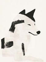 Deze verstilde afbeelding van een zittende wolf is een samensmelting van abstractie en dierlijke aanwezigheid. In een subtiel palet van zwart, wit en grijstinten worden vorm en leegte in balans gebracht. Het minimalistische lijnenspel nodigt uit tot contemplatie — de rust van het dier straalt af op de ruimte waarin het hangt.