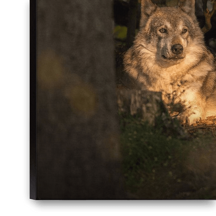 Koop de foto Wolf in de avondzon van Elles Rijsdijk op canvas, aluminium dibond, (ingelijste) fotoprint, behang en ArtFrame, op maat geprint in Fine-Art kwaliteit.