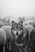 Te midden van een mystieke achtergrond van mist staat een majestueuze wolf wiens doordringende blik harten verovert. Omringd door zachte, wollige vrienden straalt hij zowel kracht als gratie uit. Deze indrukwekkende afbeelding is perfect voor een woonkamer die een elegante en toch wilde sfeer wil creëren.