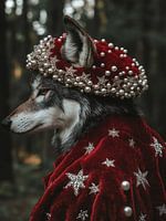wolf in het bos met rood fluwelen kleren