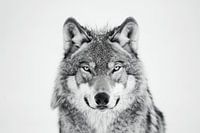 Dit indrukwekkende zwart-wit portret van een wolf legt de wilde schoonheid en intense aanwezigheid van het dier perfect vast. De fijne details van de dichte vacht en de doordringende ogen geven het beeld een speciale diepte en expressiviteit. Dit kunstwerk is ideaal voor natuurliefhebbers en kunstverzamelaars en geeft je woon- of werkruimte een krachtige en betoverende uitstraling.