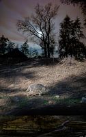 De rustig wandelende wolf in dat zachte maanlicht......een kalme nacht.