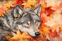 Koop dit schilderij Wolf rust zacht in de herfstbladeren van Poster Art Shop als reproductie geprint op canvas, aluminium dibond, (ingelijste) fotoprint, behang en ArtFrame. Voor jou op maat geprint in Fine-Art kwaliteit.