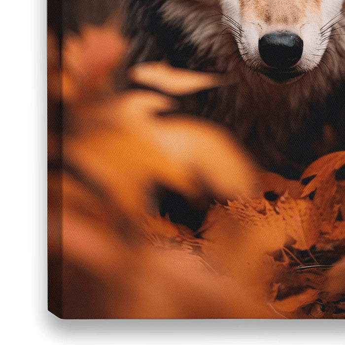 Koop de foto Wolf tussen herfstbladeren van Kimmisophiee als print op canvas, aluminium dibond, (ingelijste) fotoprint, behang en ArtFrame. Voor jou op maat geprint in Fine-Art kwaliteit.