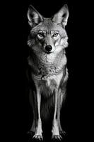 Een fascinerend, indrukwekkend dierenportret dat de wilde elegantie van een gelijkwaardig roofdier vastlegt. De contrasterende zwart-witafbeelding benadrukt de intensiteit van de ogen en de fijne details van de vacht. Perfect voor een gezellige woonkamer, waar het een gesprek kan stimuleren en de sfeer levendig kan houden.