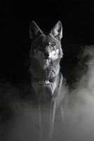 Een majestueuze wolf, gehuld in mysterieuze mist, wekt een indruk van kracht en gratie. Zijn scherpe ogen stralen intelligentie en wildernis uit, terwijl het monochrome contrast een dramatische sfeer creëert. Dit kunstwerk is ideaal voor een woonkamer en brengt een betoverende aanwezigheid en een vleugje natuur in het moderne huis.