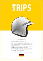 Afdrukken met de persoonlijke valhelmen van beroemde autocoureurs uit de jaren zestig.