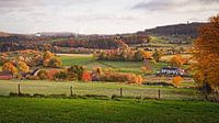 Vakwerkboerderij in het gehucht de Wolfhaag dichtbij Vaals. aan de rechterzijde het Drielandenpunt Duitsland, België en Nederland (Zuid-Limburg, Heuvelland).