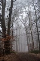 Landschap op de Wolfhezerheide in Doorwerth, op de Veluwe in Gelderland. Het is een koude en mistige winterochtend.