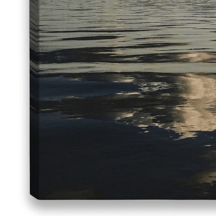 Het meest fascinerende deel van deze scène is niet alleen de dramatische lucht boven je hoofd, maar ook hoe die wordt verdubbeld in het wateroppervlak. Pluizige wolken strekken zich uit over de bovenkant van het frame terwijl hun spiegelbeeld zachtjes rimpelt onder het frame, wat een dynamische kwaliteit toevoegt die de hele compositie…