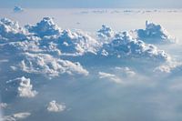 Prachtig uitzicht vanaf grote hoogte over cumulus wolken die boven een heiige laag uitsteken.