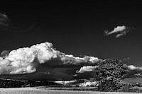 Net achter de Karawanken zie je dit prachtige landschap aan de Oostenrijkse kant. Hier in Z/W met een prachtige bewolkte lucht.