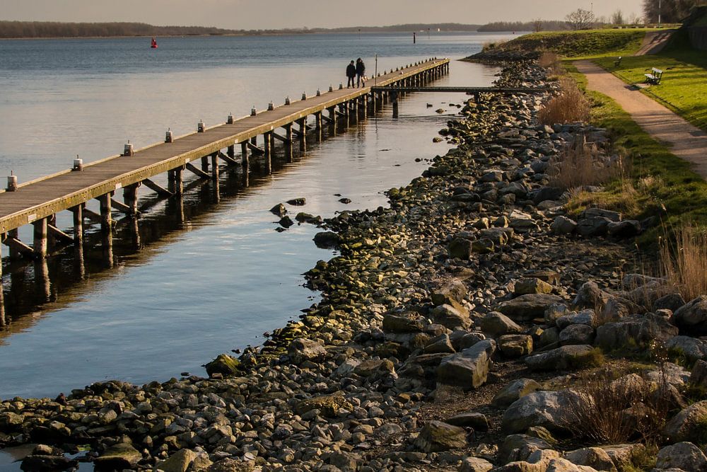 Zicht op het Veerse meer vanaf de wandelpaden langs de kustbescherming in het Zeeuwse en Walcherse stadje Veere.