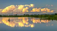 Mooie wolken drijven boven het Dannemeer, een mooi natuurgebied tussen Groningen en Slochteren 't Roegwold in de provincie Groningen. Op het dannemeer loopt het Knuppelpad een houten vlonder van 750m lang.