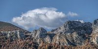 Een stevige wolk vlak boven de rotsen aan de rand van de Picos de Europa in het noorden van Spanje.