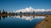 Bergmeer aan Millstättersee, Goldeck, Oostenrijk. Een wandeling op grote hoogte in alle rust. Uitzicht over het dal. Mooie wolkenpartij en weerspiegeling in het water. Oneindige rust.
