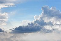 Wolken lucht in blauw grijs wit. Wie goed kijkt kan vaak van alles zien in de wolken in de lucht. Ik kijk er dan ook graag naar. Deze foto is gemaakt in onze tuin in Retie, daar hebben we vaak ook een mooi zicht op de wolken,