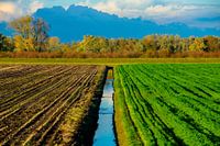 Tijdens een wandeling had ik dit prachtige uitzicht over de weilanden in Dordrecht. Wolken pakken zich samen en voorspellen een flinke regenbui. Achter de mooie herfstkleuren in de bomen en struiken leek het wel een donkere berg.