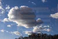 Spiegeling van wolken en een flatgebouw in een ruit in de stad Malaga Andalusie Spanje.