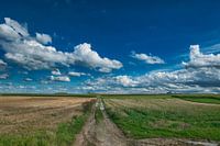 Belgian agricultural landscape on the border of the Flanders and Walloon region near Liege. blue skies landscape, blue sky, clouds, sunny, field, trees, fields, green, nature, landscape, spring, flanders, wallonia, belgium, belgian, grain crop, grain harvest, harvesting, crops harvesting, agricultural landscape, harvesting season, late summer, harvest time, farm fields