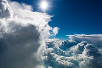 Luchtfoto dicht bij een rottende donderwolk tegen het licht, Beieren, Duitsland
