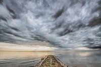 Wolkenlucht boven een spiegelend wateroppervlak vanhet IJsselmeer van Harrie Muis