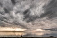 Wolkenlucht boven het IJsselmeer gespiegeld in het stilstaande water nabij Reade Klif aan de kust van Gaasterland in Friesland.